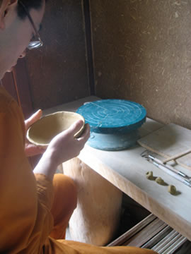 これだけ植えれば、どれかは収穫できるでしょう。毎週定休日には、世話をしに湯来へ通っております。 陶芸は、今茶碗を造っています。ろくろではなく、手びねりです。竹内君は不器用なので、手びねりの方がいいと思います。中心がずれているので、少しゆがんでいますが、手造り感があって楽しいと思います。 やはり実際にやってみないと何事もわからない。今から料理造りにたいへん役に立つと思います。これからも料理以外の事にもチャレンジして料理人としての厚みをつけてほしいです。 竹内君の造った野菜と器がお客様の前にお目見えする日を楽しみにしておいてください。 |