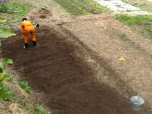 3月より、蔵の若手料理人、竹内君が陶芸と畑造りを湯来町野草庵の陶芸家、森川容子さんの指導の下、チャレンジが始まりました。 まずは、畑造りです。機械を使わずに自分の手で耕し、落ち葉で堆肥を造り、牛の堆肥とともに畑に混ぜて土造り。 最初にじゃがいもを植えました。4月に無事に芽が出ました。 その後、トマト、胡瓜、茄子、かぼちゃ、落花生、すいか、メロン、へちまなど、計16種類。 |
