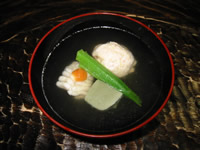 冬瓜 椎茸 牛蒡 地鶏 海老あん掛け 振り柚子