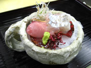 | 蒸物 | 鯛と岩国蓮根 菊花あん 銀杏 道明寺 | ||||||