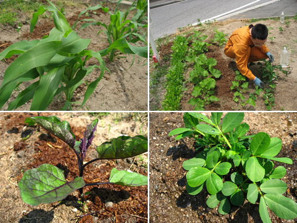 夏野菜がすくすく育っております。とうもろこし、枝豆、オクラ、メロン、落花生など、今年は更に大豆も植えて、収穫が楽しみです。大豆でお豆腐、おいしい料理ができそうです。私も、茄子、枝豆、ゴーヤを植えました。お店で使えるくらい上手にできることを楽しみにしています。
