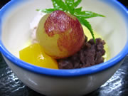 | 椀 | 久保田農園の里芋と甘ダイの蟹あん掛け 菊花 山葵 | |||