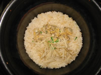 黒楽御飯鍋の釜炊きごはん 合鴨農法米(福富町)又はこしひかり減農薬米(布野) 発芽玄米(福富町) 無農薬番茶(上下町) 自家製味噌汁と漬物