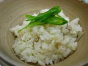 | 御飯 | 黒楽御飯鍋の釜炊きごはん(雲井窯・志賀) 棚田米(島根県柿の木村大井谷・標高400M) 自家製味噌の汁と漬物 無農薬番茶(上下町) | |||