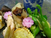 | 椀 | 若布(広島) 鮑茸(吉和) 白魚(広島、他) 筍(広島、他) 結び湯葉(京都) | |||