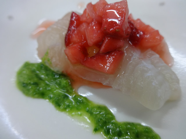 さらに、心臓の働きを強める作用や不整脈を改善する働きもあることがわかっています。さて、今月蔵では、ヒラメのカルパッチョをコース料理の中にお出ししております。特製はつか苺のカルパッチョソースでお召し上がり下さい!