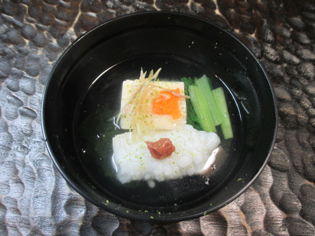 豆乳とうふ(奥出雲) 鳴門若布 鱧(瀬戸内海) 茗荷 小松菜(廿日市)