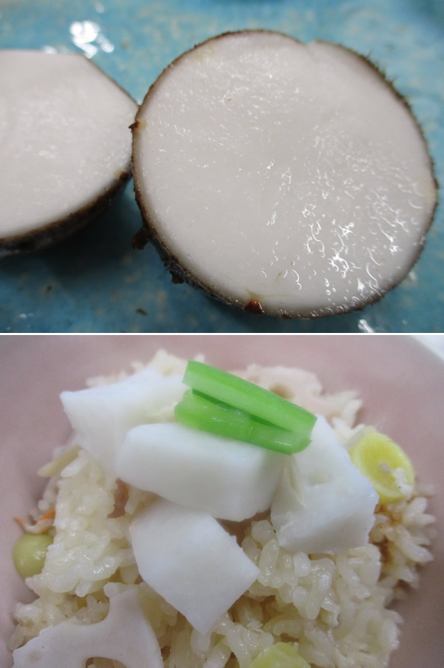 皮をむくと真っ白な肌色。火を通すとうま味たっぷり、ねっとり食感。