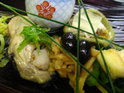 | 焼物 | 石焼.寒鰤柚子香り(山陰他) 牡蠣(地御前) 牛蒡(廿日市) わさび菜(廿日市) | |||