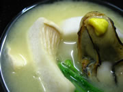 | 椀 | 里芋の白味噌仕立(久保田さん) 友安さんの水菜 地物のあわび茸 地物牡蠣 | |||
